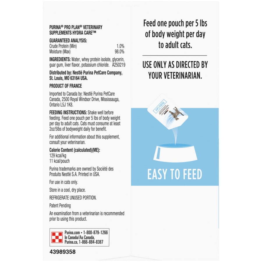 Purina Pro Plan Veterinary Supplements - Hydra Care for Cats. It keeps them hydrated. With an easy-to-feed pouch and an enticing liver flavor.